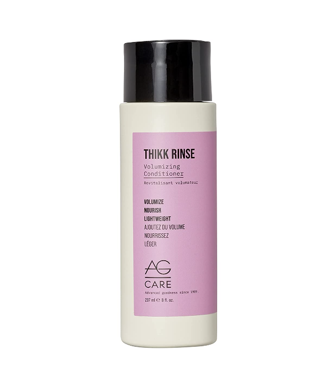 AG Hair is a professional salon hair care brand that has been producing hair care products since 1989. Their Thikk Rinse Volumizing Conditioner is a lightweight, nourishing conditioner that adds body and volume to the hair while providing intense hydration. It contains AG's exclusive Curl Creating Complex (C3) to promote soft, silky curls and waves, and a unique blend of natural ingredients like honey, oat kernel, and olive oil to nourish, condition, and protect the hair.