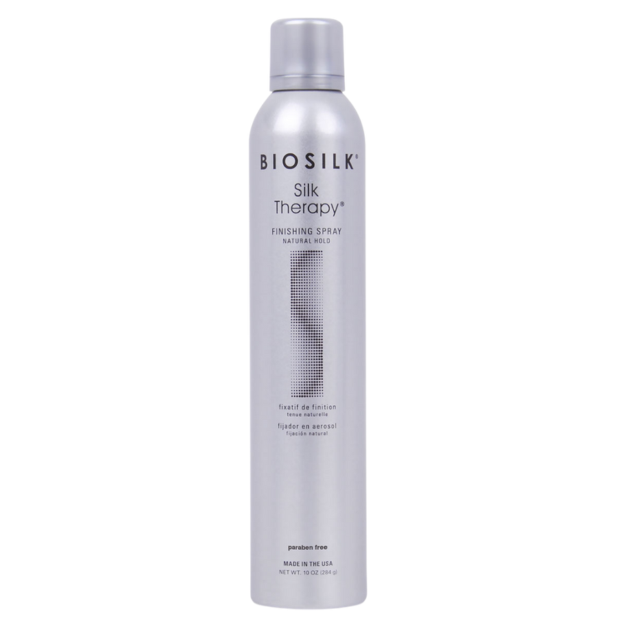 BioSilk Silk Therapy Finishing Spray Natural Hold is a uniquely designed hairspray developed to maintain your favorite looks with pliable hold while using silk botanicals to provide brilliant shine.