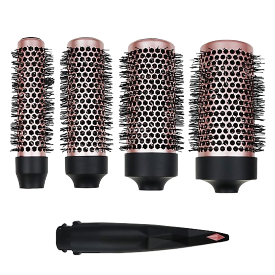 This interchangeable 4-Piece Round Hair Brush Set includes all the options you need for professional blow dry results on all hair types.