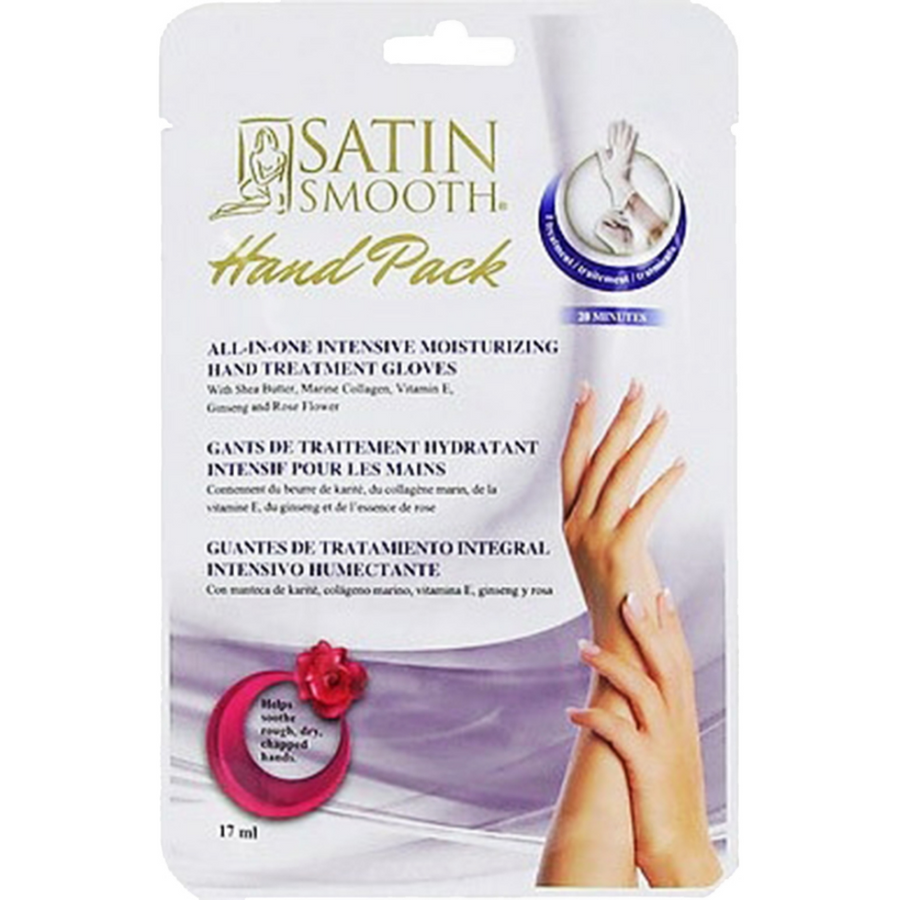 Satin Smooth All-In-One Intensive Moisturizing Hand Treatment gloves penetrate deep into the skin for maximum moisture and softness. Convenient, easy to use and no mess. Help soothe rough, dry, chapped hands.
