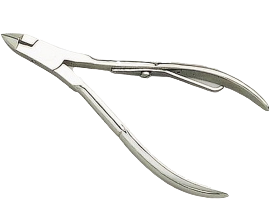 Soak fingertips in warm water to soft cuticles. Gently push back cutucles and trim excess cuticle and hangnails with the cuticle nipper.