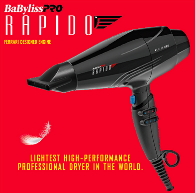 EXTREMELY POWERFUL. INCREDIBLY LIGHTWEIGHT. The secret is inside – internal construction expertly engineered to significantly reduce dryer weight. Add to that the ultralight MaxLife®PRO brushless motor to experience the lightest weight, high-performance, professional dryer ever made. The BaBylissPRO® Rapido® is also meticulously engineered to be exceptionally quiet for the highest level of noise reduction during use. True Italian craftsmanship makes it supremely durable, setting a new standard of excellence in POWER, PERFORMANCE and QUALITY.