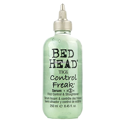 Bed Head Control Freak Frizz-Control and Straightener Serum is a hair product designed to help reduce frizz and straighten hair. It works by coating the hair with a combination of silicones and polymers that help seal and smooth the hair cuticles. It also adds shine and helps protect hair from heat styling.
