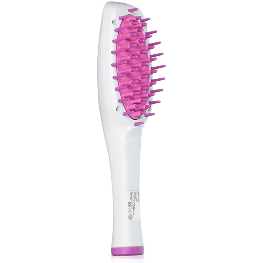 • Plug in your hot brush and let it heat up to your desired temperature. Working in small sections, brush SLOWLY through the hair from roots to tips. For extra volume, lift each section up and away from your head as you glide the brush down the hair. (Optional) Curl your ends.