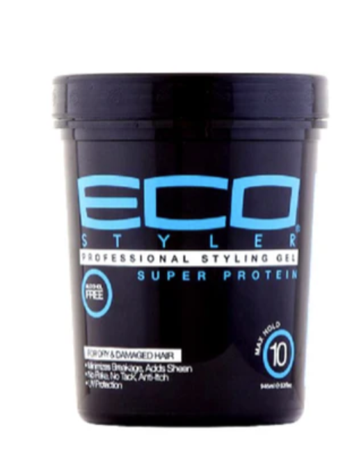 Eco Style Super Protein Gel Removes static charges, reduces frizz, minimizes breakage from chemical and heat abuse. Eco Style Super Protein Gel is string holding, water based and will provide moisture to help maintain healthy hair. Removes static charges, reduces frizz, minimizes breakage from chemical and heat abuse