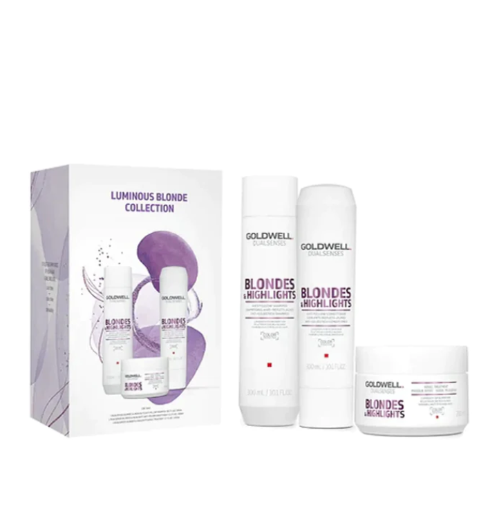 GOLDWELL Dualsenses Blondes & Highlights Anti-Yellow Holiday Duo - GOLDWELL Dualsenses Blonde & Highlights Anti-Yellow Shampoo instantly brings out color luminosity and neutralized unwanted yellow tones for blonde color reflections.