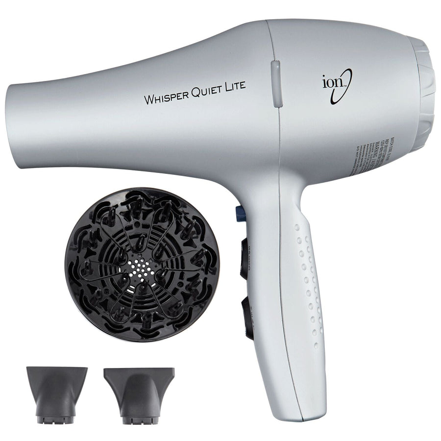 Ion Whisper Quiet Lite Ionic - Ceramic Hair Dryer (1875 watts) gives you the best of all worlds in one tool: lightweight, quiet, powerful hair drying performance. The Whisper Quiet Lite Ionic Ceramic hair dryer is ultra-light (16oz), has 1875 watts of heating power, and the tourmaline ionic technology produces anti-frizz styling for beautiful, shiny, smooth hair. Has four (4) temperature settings, cool shot button, a removable filter, and 2-speed settings. The Whisper Quiet Lite Ionic Ceramic hair dryer is ultra-light and whisper-quiet with maximum power to deliver the ultimate blow drying experience.