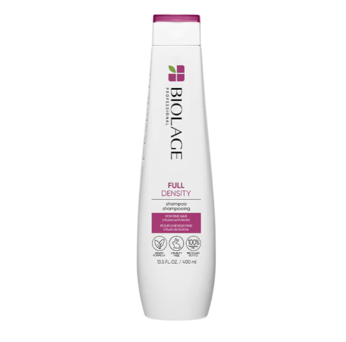 Biolage Full Density Conditioner for thin hair is infused with biotin and nourishes thinning hair while building hair resiliency from root to tip. This creamy formula leaves hair shiny-looking and soft-feeling. FULL DENSITY system of Shampoo and Conditioner nourishes & fortifies thinning hair leaving hair fuller-looking and healthier-feeling hair after just one use*. This system promotes healthy scalp and strong lengths for thicker-feeling hair.