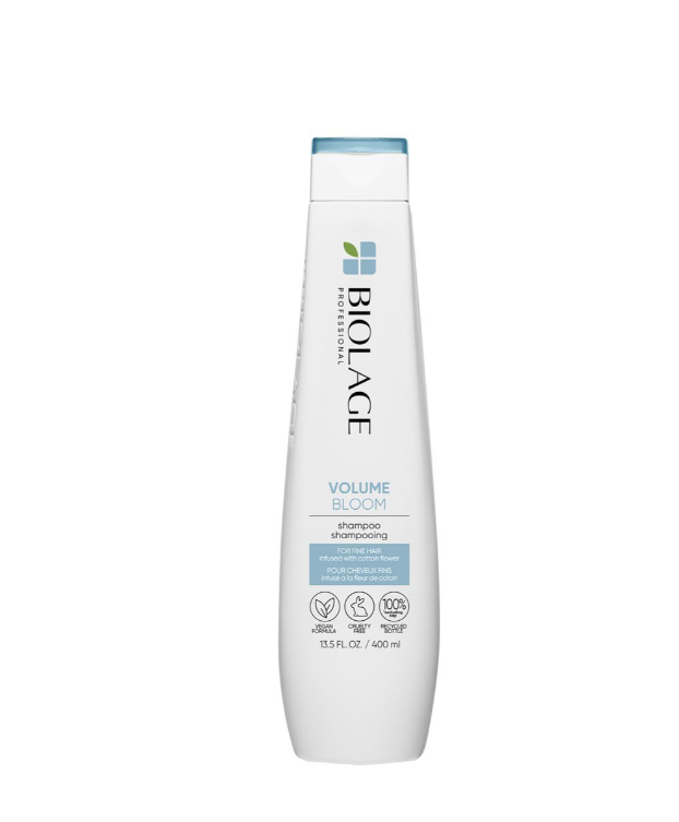 Get volume that won't let you down. Inspired by nature's expanding cotton flower, Biolage VolumeBloom Shampoo plumps fine hair with long-lasting bouncy volume. This shampoo gently cleanses hair with minimal stripping while adding lightweight volumizing shine.