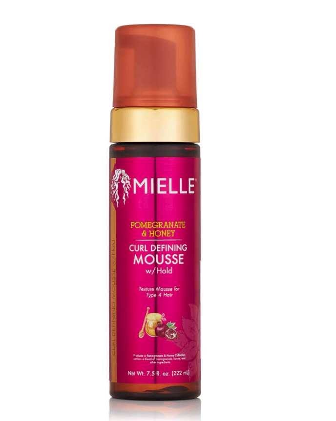 - After hair has been cleaned and is damp, divide into sections. Apply a liberal amount of the Pomegranate & Honey Curl Defining Mousse with Hold to hair combing or fingering through from root to end. Follow the same pattern in each section of hair until completely done. Style hair as desired.