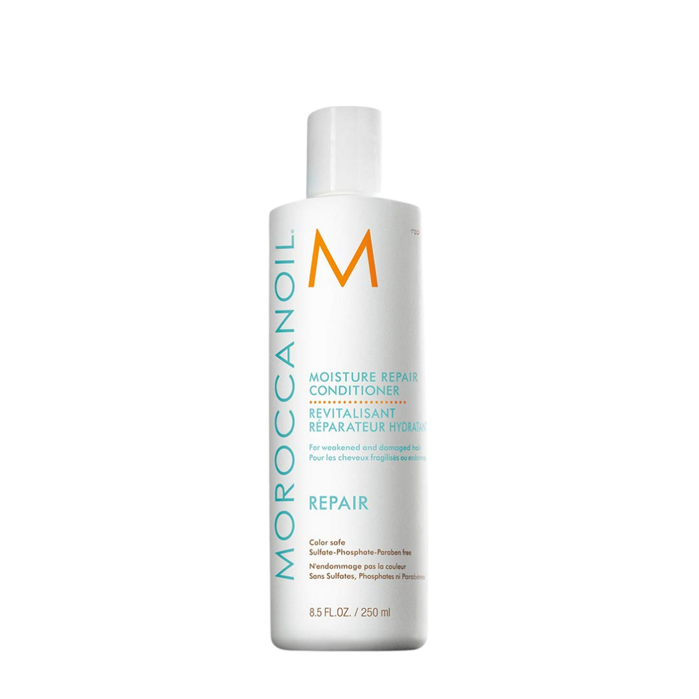 - After shampooing, squeeze excess water and apply Moroccanoil® Moisture Repair Conditioner from mid-length to ends. Leave on for 1–2 minutes and rinse well. Use regularly with Moroccanoil Moisture Repair Shampoo for best results.