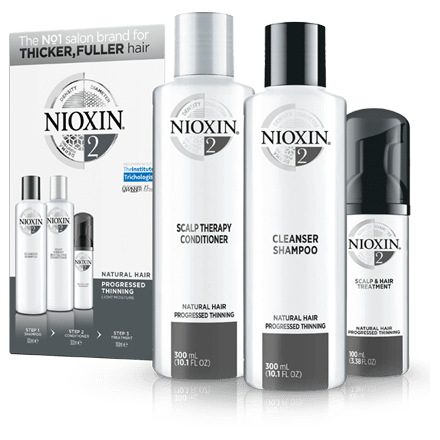 Nioxin System 2 for thinning natural, non-colored hair delivers thicker, fuller hair, while protecting every hair strand against damage.