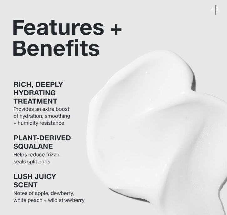Sealing hair mask provides an extra boost of hydration, smoothing and humidity resistance.