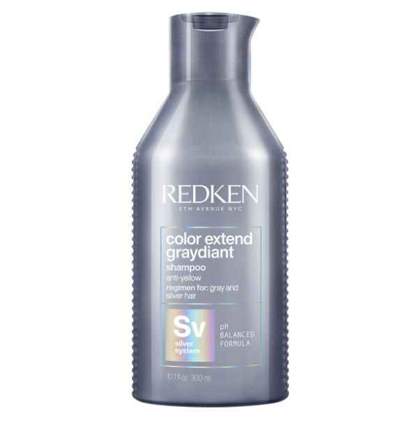 Redken's Color Extend Graydiant Purple Shampoo brightens and nourishes gray, silver, light blonde hair & light blonde color treated hair. This anti-yellow shampoo is a hair toner that instantly neutralizes brassy hair for a more radiant hair color. Formulated with customized violet pigments & Citric Acid, this shampoo strengthens and transforms gray, silver and light blonde hair for strands that are 2x stronger* with increased softness and shine. (*when you use Graydiant Shampoo and Conditioner as a system)