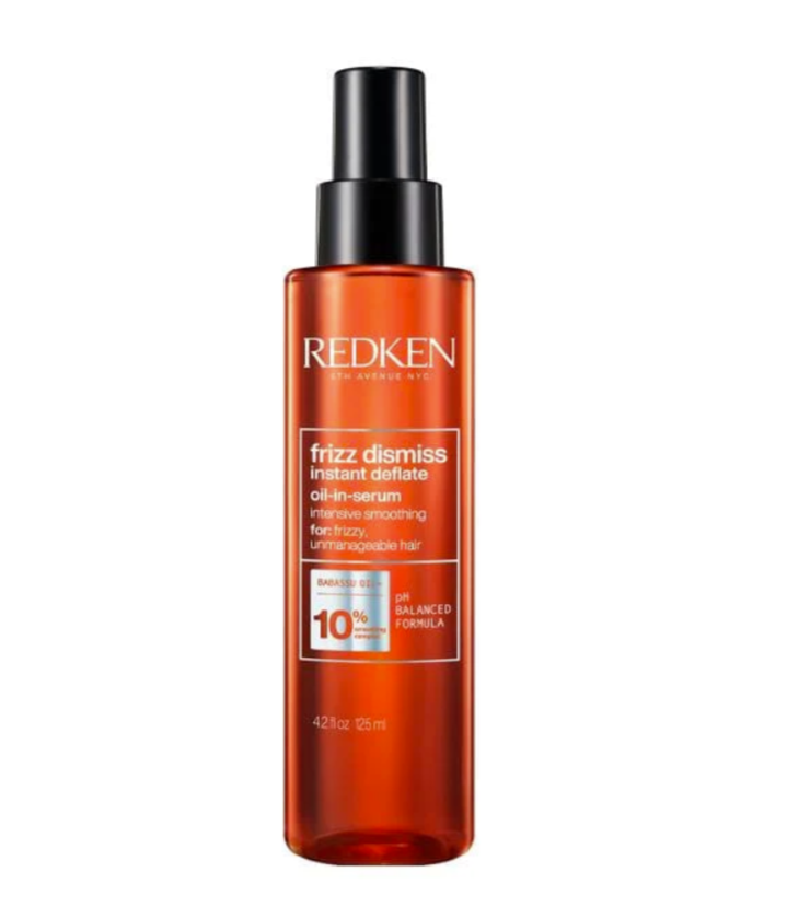 Redken Frizz Dismiss Instant Deflate Oil-In-Serum is an anti-frizz, hair oil serum that controls puffiness and frizz caused by humidity. The formula features Redken's Smoothing Complex and sustainably sourced babassu oil for increased manageability, smoothness, and shine.