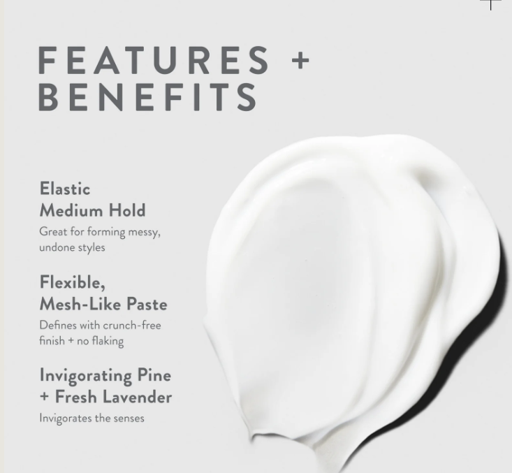 Flexible, mesh-like hair paste for men forms undone, crunch-free and flake-free hairstyles.