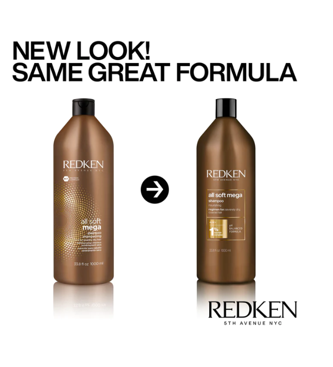 Redken's All Soft Mega Shampoo delivers hydration and nourishment to severely dry and coarse hair. Formulated with Cactus Extract, Sacha Inchi Oil, Aloe Vera and our exclusive RCT Protein Complex that treats hair from the root to the core to the tip, this smart and targeted delivery system gives three levels of custom nourishment while the gentle cleansers remove impurities without stripping hair of its natural oils, for healthier, hydrated hair.