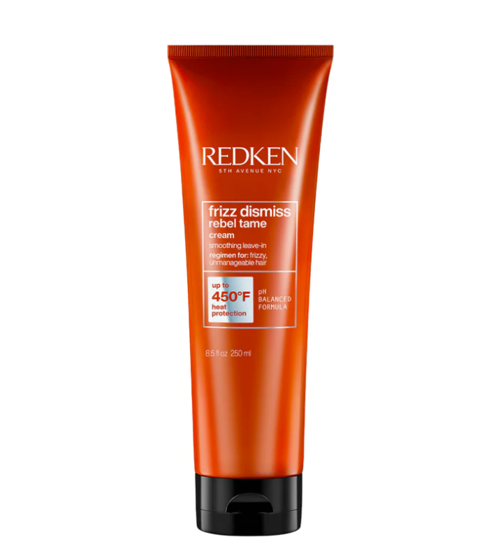 Redken's Frizz Dismiss Rebel Tame is a hydrating and heat protective leave-in cream for frizzy hair. Frizz Dismiss Rebel Tame provides smoothing benefits and humidity protection for all hair types.