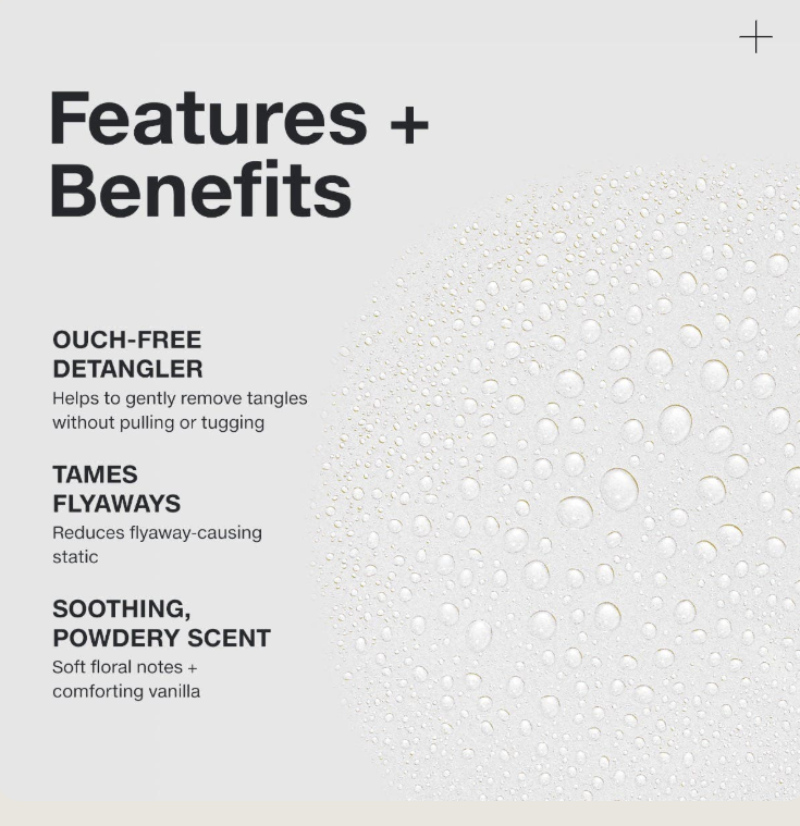 Spray on damp hair to aid in detangling without pulling or tugging.