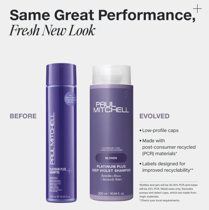 For medium to dark and highlighted blondes that need powerful weekly toning, Paul Mitchell Platinum Plus Deep Violet Shampoo delivers 5x more toning power than Platinum Blonde Violet Shampoo. This purple shampoo has a deep violet formula that instantly tones and corrects yellow, brassy tones and brightens highlights while improving manageability and adding shine. For best results, use weekly.