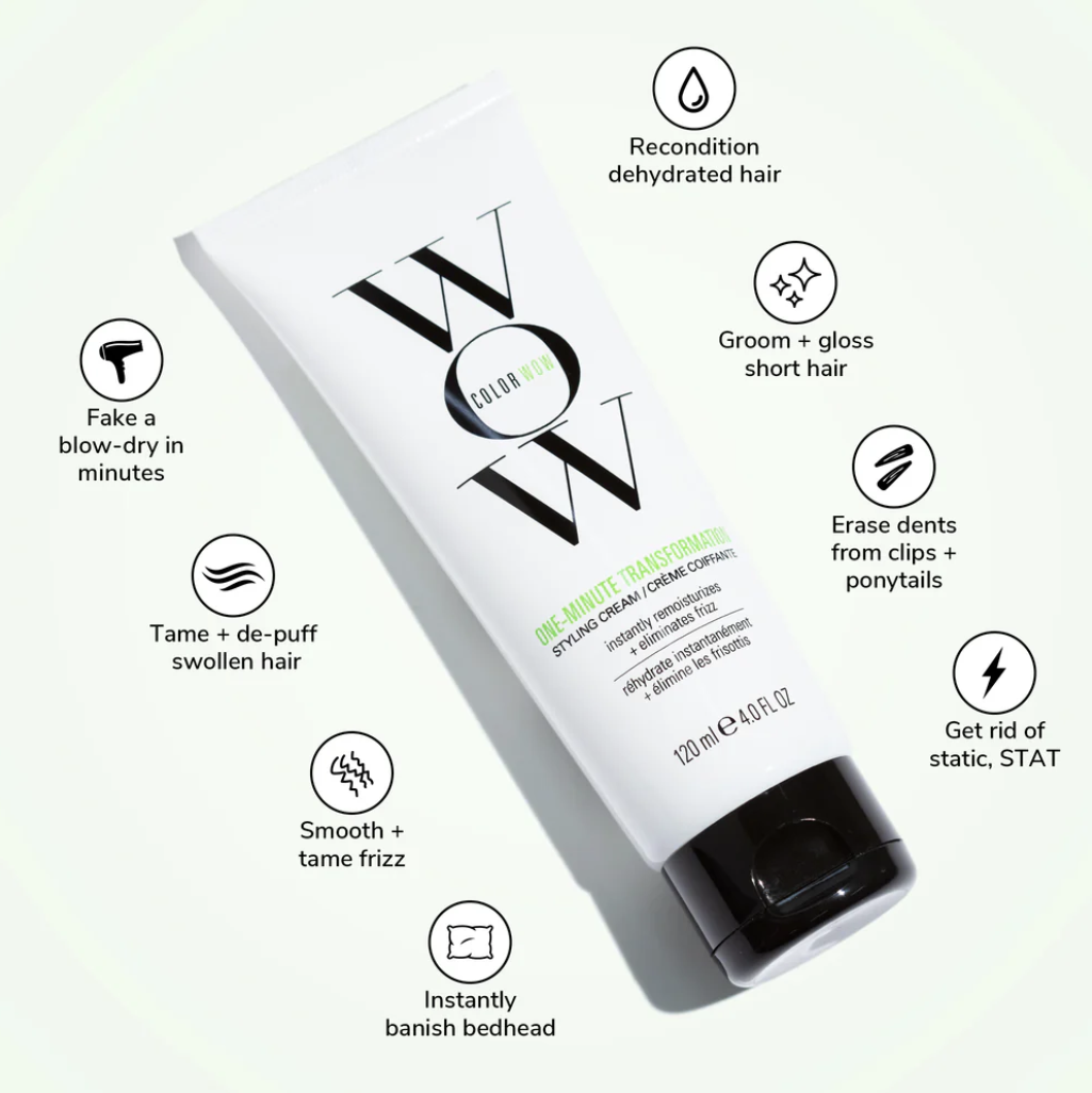 An on-the-spot fix when hair gets bent out of shape. Applied to dried hair, instantly re-conditions, eliminates frizz and creates a smooth, polished surface. Can simply by smoothed over frizzy sections to create a more polished, healthier appearance. Or, for a more professional looking blow-dry, apply to dry hair section by section, wrap around a round brush and hit with a blow dryer. Rich in Omega 3’s, it nourishes and hydrates without being greasy or oily. It’s a minute to amazing.