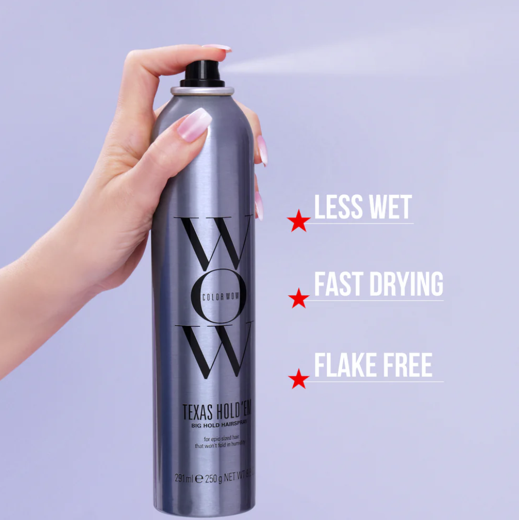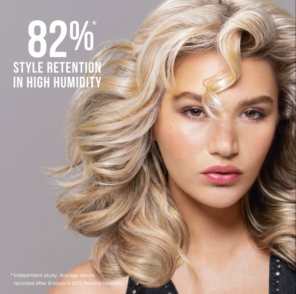 Style waves, curls, updos, and big-volume styles that won’t flake or fall flat with this advanced, strong-hold hairspray. Its non-dulling, crystal-clear, less-wet formula brushes out effortlessly and dries quickly, depositing 50 percent less alcohol than leading competitors. It also provides 82 percent style retention after up to eight hours in high humidity while protecting against heat up to 380°F and UV rays.