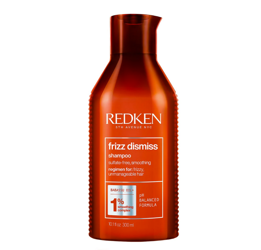 - After using Redken's Frizz Dismiss Shampoo, apply to wet hair and rinse. The Frizz Dismiss shampoo and conditioner system can be used daily on all hair types.